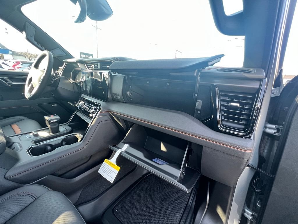 AT4 Preferred Package (Power Sliding Rear Window w/Rear Defogger and Universal Home Remote), AT4 Premium Package (Off-Road High Clearance Step (LPO)), Preferred Equipment Group 4SB (120-Volt Bed Mounted Power Outlet, 120-Volt Interior Power Outlet, 2 Charge/Data USB Ports Inside Center Console, 2 Type-C Charge-Only Rear USB Ports, 2 USB Ports, 220 Amp Alternator, Auto-Locking Rear Differential, Black Chrome Grille Insert Bars, Color-Keyed Carpeting Floor Covering, Deep-Tinted Glass, Electric Rear-Window Defogger, Floor-Mounted Center Console, Front Prem Floor Liners w/Removable Carpet Insert, Front Rain-Sensing Wipers, HD Surround Vision, Heated 2nd Row Outboard Seats, Heated Driver & Front Outboard Passenger Seating, Heavy-Duty Air Filter, Hill Descent Control, Hitch View, In-Vehicle Trailering System App, Integrated Trailer Brake Controller, Keyless Open & Start, LED Cargo Area Lighting, OnStar Services Capable, Perimeter Lighting, Power Door Locks, Power Front Passenger Windows w/Express Up/Down, Power Front Windows w/Driver Express Up/Down, Power Rake & Telescoping Steering Column, Power Rear Windows w/Express Down, Premium Bose 7-Speaker Sound System, Push Button Start, Rear Cross Traffic Braking, Rear Pedestrian Detection, Rear Prem Floor Liners w/Removable Carpet Insert, Rear Wheelhouse Liners, Red Recovery Hooks, Remote Vehicle Starter System, SiriusXM w/360L Trial Subscription, Spray-On Pickup Bedliner w/GMC Logo, Steering Wheel Audio Controls, Theft Deterrent System (Unauthorized Entry), Trailer Camera Provisions, Trailer Side Blind Zone Alert, Ultrasonic Front & Rear Park Assist, Ventilated Driver & Front Passenger Seats, Wi-Fi Hotspot Capable, and Wireless Charging), Technology Package (Bed View Camera, Multicolor 15 Diagonal Head-Up Display, and Rear Camera Mirror), Trailering Package (Hitch Guidance), 10-Speed Automatic, 4WD, Jet Black With Kalahari Accents Leather, 10-Way Power Driver Seat Adjuster w/Lumbar, 10-Way Power Passenger Seat Adjuster w/Lumbar, 170 Amp Alternator, 3.23 Rear Axle Ratio, 4-Wheel Disc Brakes, 7 Speakers, ABS brakes, Air Conditioning, Alloy wheels, AM/FM radio: SiriusXM with 360L, Apple CarPlay/Android Auto, Auto High-beam Headlights, Auto-dimming door mirrors, Auto-dimming Rear-View mirror, Automatic Emergency Braking, Automatic temperature control, Auxiliary External Transmission Oil Cooler, Block heater, Brake assist, Buckle to Drive, Bumpers: body-color, Compass, Delay-off headlights, Driver door bin, Driver Memory, Driver vanity mirror, Dual Active Exhaust, Dual front impact airbags, Dual front side impact airbags, Electronic Stability Control, Emergency communication system: OnStar, External Engine Oil Cooling, Following Distance Indicator, Forward Collision Alert, Front anti-roll bar, Front Bucket Seats, Front Center Armrest, Front dual zone A/C, Front fog lights, Front Pedestrian Braking, Front reading lights, Front wheel independent suspension, Fully automatic headlights, Heated door mirrors, Heated front seats, Heated rear seats, Heated steering wheel, Illuminated entry, IntelliBeam Automatic High Beam On/Off, Lane Keep Assist w/Lane Departure Warning, Low tire pressure warning, Memory seat, Navigation System, Occupant sensing airbag, Off-Road Suspension, Outside temperature display, Overhead airbag, Overhead console, Panic alarm, Passenger door bin, Passenger vanity mirror, Perforated Front Leather Seat Trim, Power door mirrors, Power driver seat, Power passenger seat, Power steering, Power Sunroof, Power windows, Radio data system, Radio: Premium GMC Infotainment Audio System, Rain sensing wipers, Rear reading lights, Rear seat center armrest, Rear step bumper, Rear window defroster, Remote keyless entry, Safety Alert Seat, Security system, Speed control, Speed-sensing steering, Split folding rear seat, Steering wheel mounted audio controls, Tachometer, Telesco