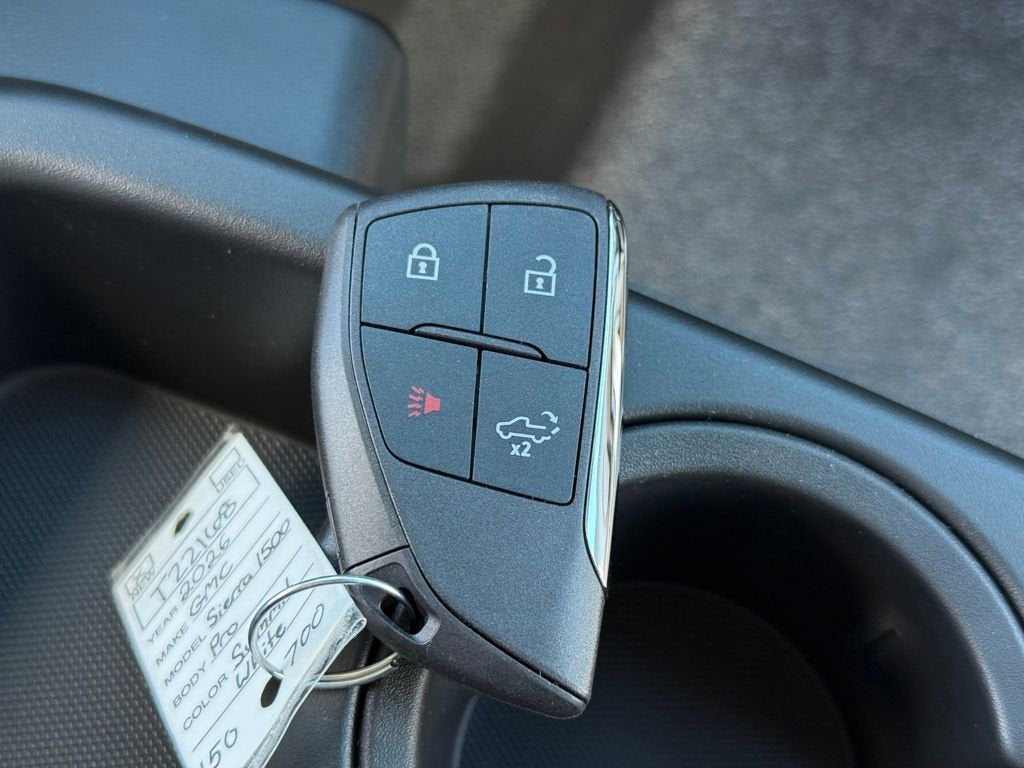 Convenience Package (Deep-Tinted Glass, Electric Rear-Window Defogger, EZ Lift Power Lock and Release Tailgate, and LED Cargo Area Lighting), Preferred Equipment Group 1SA (2 Charge/Data USB Ports, 220 Amp Alternator, 4-Way Manual Driver Seat Adjuster, 4-Way Manual Passenger Seat Adjuster, Chrome Header with Flat Black Grille Insert Bars, Front 40/20/40 Split-Bench Seat, Front Frame-Mounted Black Recovery Hooks, HD Rear Vision Camera, OnStar Services Capable, Power Door Locks, Power Front Windows with Driver Express Up/Down, Power Front Windows with Passenger Express Down, Push Button Start, Remote Keyless Entry, Solar Absorbing Tinted Glass, Wheels: 17 x 8 Silver Painted Steel, and Wi-Fi Hotspot Capable), Pro Value Package, Snow Plow Prep Package (Heavy-Duty Air Filter), Standard Suspension Package, Trailering Package (Hitch Guidance), 10-Speed Automatic, 4WD, Black Cloth, 10-Way Power Driver Seat Adjuster with Lumbar, 120-Volt Bed Mounted Power Outlet, 120-Volt Interior Power Outlet, 2 Speakers, 2-Speaker Audio System Feature, 4-Wheel Disc Brakes, ABS brakes, Air Conditioning, AM/FM radio, Apple CarPlay/Android Auto, Auto High-beam Headlights, Auto-Locking Rear Differential, Automatic Emergency Braking, Auxiliary External Transmission Oil Cooler, Brake assist, Buckle to Drive, Bumpers: chrome, Compass, Delay-off headlights, Driver door bin, Dual front impact airbags, Dual front side impact airbags, Electronic Stability Control, Emergency communication system: OnStar, External Engine Oil Cooling, Following Distance Indicator, Forward Collision Alert, Front anti-roll bar, Front Center Armrest w/Storage, Front Pedestrian Braking, Front reading lights, Front wheel independent suspension, Fully automatic headlights, Heated door mirrors, Illuminated entry, IntelliBeam Automatic High Beam on/Off, Lane Keep Assist with Lane Departure Warning, Low tire pressure warning, Occupant sensing airbag, Outside temperature display, Overhead airbag, Overhead console, Panic alarm, Passenger door bin, Passenger vanity mirror, Power door mirrors, Power steering, Power windows, Radio data system, Radio: GMC Infotainment Audio System, Rear reading lights, Rear step bumper, Remote keyless entry, Speed control, Speed-sensing steering, Tachometer, Tilt steering wheel, Traction control, Trip computer, Variably intermittent wipers, Vinyl Seat Trim, Voltmeter, and Wireless Apple CarPlay/Wireless Android Auto. Summit White 2026 GMC Sierra 1500 Pro 2D Standard Cab EcoTec3 5.3L V8 15/18 City/Highway MPG 10-Speed Automatic 4WD