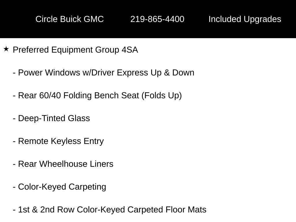6-Speed Automatic Electronic with Overdrive, 4WD, Black Leather, 110-Volt AC Power Outlet, 150 Amp Alternator, 1st & 2nd Row Color-Keyed Carpeted Floor Mats, 2-Speed Active Electronic AutoTrac Transfer Case, 20 x 9 Polished Aluminum Wheels, 4.2 Diagonal Color Display Driver Info Center, 6 Rectangular Chromed Tubular Assist Steps, Auto-Dimming Inside Rear-View Mirror, Auxiliary External Transmission Oil Cooler, Chrome Bodyside Moldings, Chrome Door Handles, Chrome Mirror Caps, Color-Keyed Carpeting, Driver & Front Passenger Illuminated Vanity Mirrors, Dual-Zone Automatic Climate Control, Electric Rear-Window Defogger, EZ Lift & Lower Tailgate, Heated Driver & Front Passenger Seats, Heavy-Duty Rear Locking Differential, Hill Descent Control, Leather Wrapped Heated Steering Wheel, LED Cargo Box Lighting, LED Tailamps w/Signature, Off-Road Suspension Package, OnStar 3 Month Guidance Plan, OnStar w/4G LTE, Power Adjustable Pedals, Power Folding & Adjustable Heated Outside Mirrors, Power Sliding Rear Window w/Defogger, Preferred Equipment Group 4SA, Rear Vision Camera, Rear Wheelhouse Liners, Remote Vehicle Starter System, Single Slot CD/MP3 Player, SLT Preferred Package, SLT Premium Package, Steering Wheel Audio Controls, Theft Deterrent System (Unauthorized Entry), Thin Profile LED Fog Lamps, Trailering Equipment, Universal Home Remote.