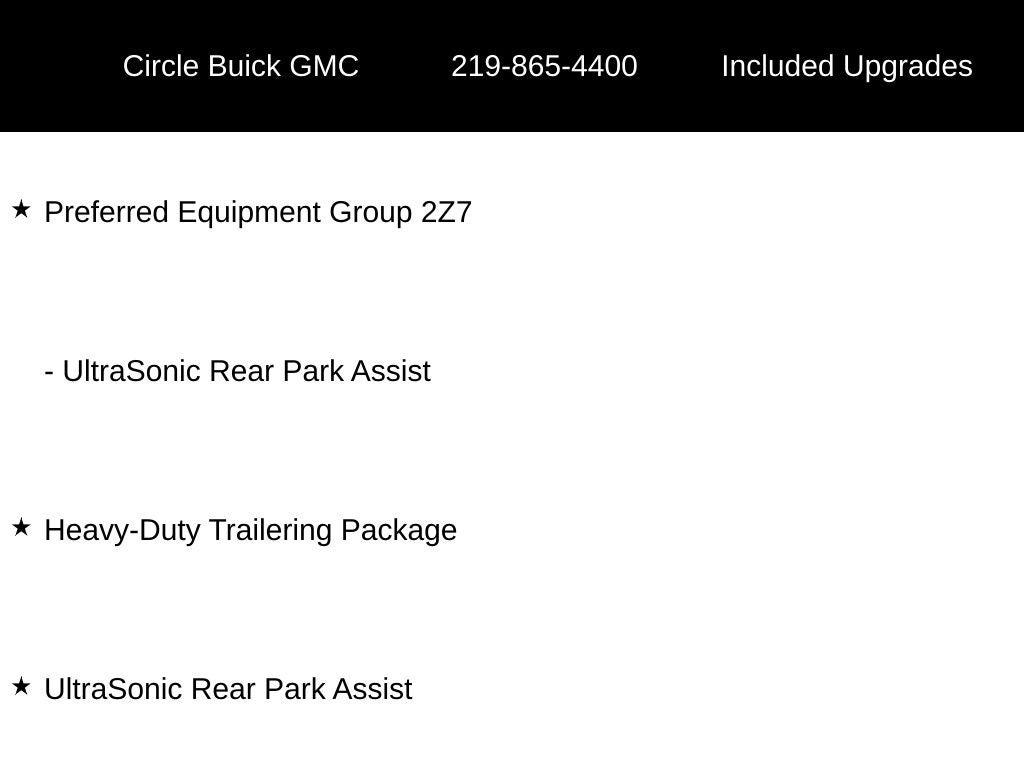 ** Alloy Wheels / Premium Wheels, ** Bluetooth®, Hands Free, **Camera Backup, ** Cruise Control, ** Keyless Entry, ** Premium Sound System / Premium Audio, ** Stability Control, ** Steering Wheel Controls, Heavy-Duty Trailering Package, Preferred Equipment Group 2Z7, UltraSonic Rear Park Assist.
