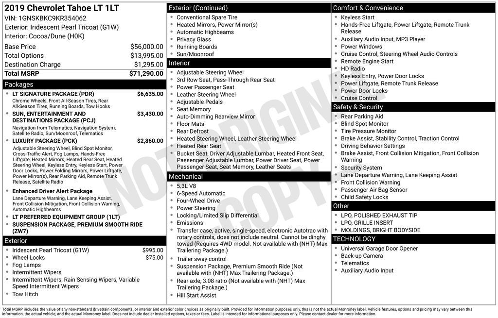 CARFAX One-Owner. Odometer is 37242 miles below market average! Iridescent Pearl Tricoat 2019 Chevrolet Tahoe 4D Sport Utility LT EcoTec3 5.3L V8 15/21 City/Highway MPG 6-Speed Automatic Electronic with Overdrive 4WD