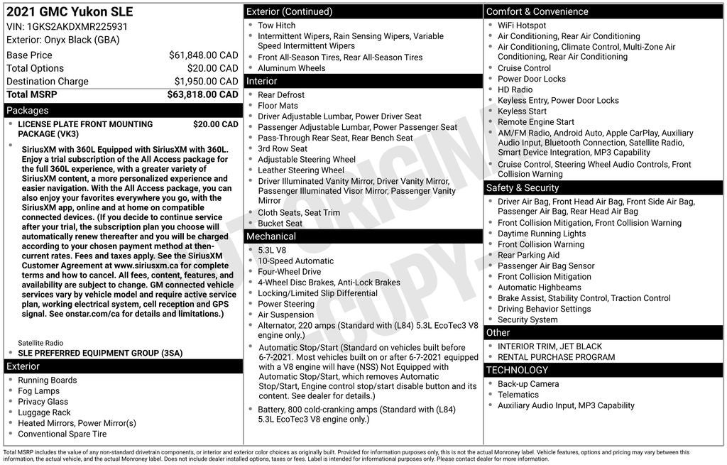 Clean CARFAX. Black 2021 GMC Yukon 4D Sport Utility SLE EcoTec3 5.3L V8 16/20 City/Highway MPG 10-Speed Automatic with Overdrive 4WD