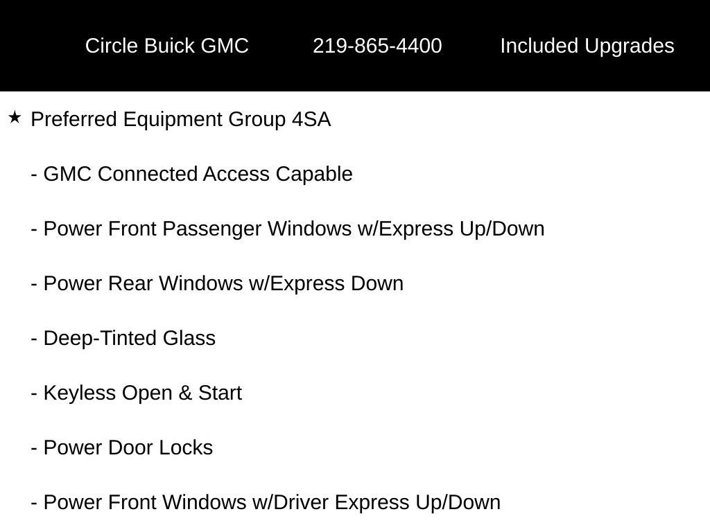 12-Volt Rear Auxiliary Power Outlet, 120-Volt Bed Mounted Power Outlet, 120-Volt Instrument Panel Power Outlet, 170 Amp Alternator, 2 USB Ports, 2 USB Ports (1st Row), Auto-Locking Rear Differential, Auxiliary External Transmission Oil Cooler, Chrome Grille, Color-Keyed Carpeting Floor Covering, Compass, Deep-Tinted Glass, Electric Rear-Window Defogger, Floor-Mounted Center Console, Front Bucket Seats, Front Frame-Mounted Black Recovery Hooks, GMC Connected Access Capable, Heated Steering Wheel, Hitch Guidance, Hitch Guidance w/Hitch View, In-Vehicle Trailering App, Integrated Trailer Brake Controller, Keyless Open & Start, LED Cargo Area Lighting, Manual Tilt-Wheel & Telescoping Steering Column, OnStar & GMC Connected Services Capable, Power Door Locks, Power Front Passenger Windows w/Express Up/Down, Power Front Windows w/Driver Express Up/Down, Power Rear Windows w/Express Down, Power Sliding Rear Window w/Rear Defogger, Preferred Equipment Group 4SA, Premium Bose 7-Speaker Sound System, ProGrade Trailering System, Radio: Premium GMC Infotainment Sys w/Navigation, Rear Dual USB Charging-Only Ports, Rear Wheelhouse Liners, Remote Vehicle Starter System, SiriusXM w/360L, SLT Convenience Package, SLT Preferred Package, Steering Wheel Audio Controls, Theft Deterrent System (Unauthorized Entry), Trailering Package, Universal Home Remote, Ventilated Driver & Front Passenger Seats, Wi-Fi Hotspot Capable, Wireless Charging.